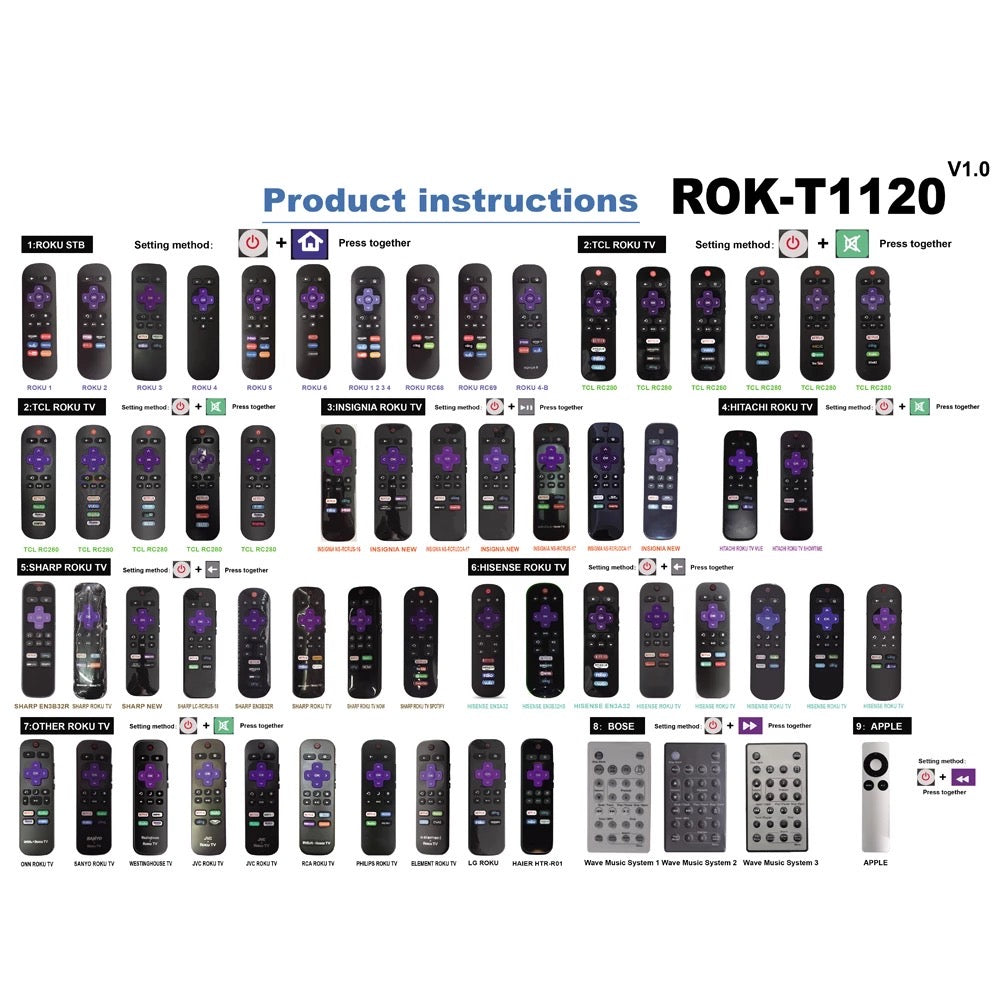 *CONTROL REMOTO UNIVERSAL 3 EN 1 DE ÚLTIMA GENERACIÓN* ÚSALO EN DISPOSITIVOS DE ENTRETENIMIENTO ROKU STREAMING TV, APPLE TV, SISTEMAS DE AUDIO BOSE Y PANTALLAS ROKU STREAMING TV DE LAS MARCAS: TCL INSIGNIA HITACHI ONN SHARP PHILIPS LG SANYO WESTINGHOUSE JVC RCA ELEMENT HAIER HISENSE -FÁCIL PROGRAMACIÓN -MATERIALES DE ALTA CALIDAD -GRAN ALCANCE -MEMORIA INTELIGENTE NOTA IMPORTANTE: EN LA SEGUNDA IMAGEN DE LA PUBLICACIÓN SE MUESTRAN TODO LOS MODELOS DE CONTROL REMOTO CON LOS CUALES ES COMPATIBLE EL CONTROL REMOTO UNIVERSAL.