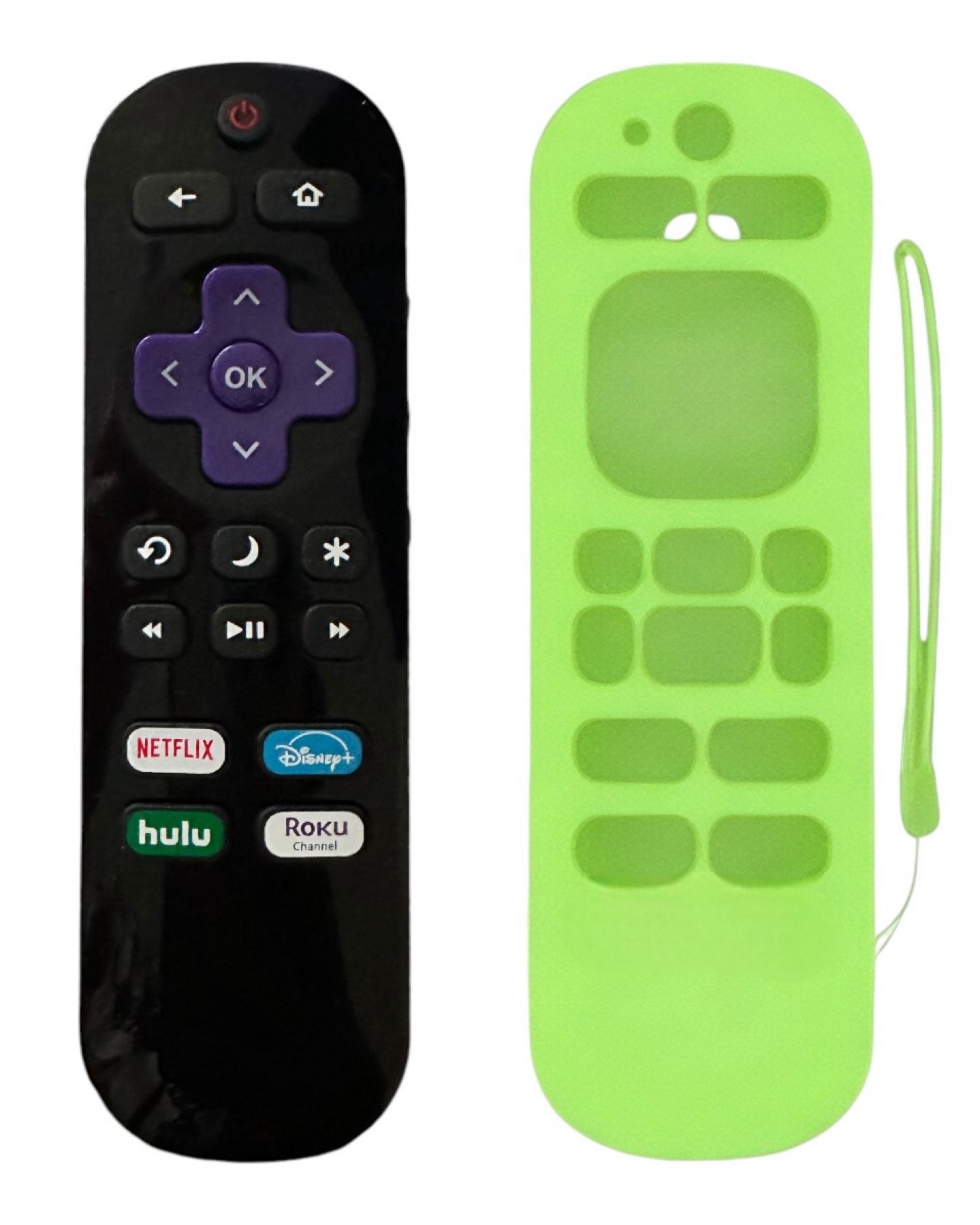 “El color de la funda de silicona se envía al azar, de acuerdo a disponibilidad y podría ser en color: verde, azul, azul ligero, negro o rojo”. Estimado comprador: este control remoto únicamente es compatible para tu dispositivo, si el control remoto anterior que usabas era físicamente igual al de la imagen publicada, en caso contrario "no" funcionará en lo absoluto. Te pedimos revisar a detalle la información y descripción del producto antes de realizar la compra. Evita devoluciones posteriores. Control Remoto Compatible Con Pantallas Roku Streaming Tv Mas Funda de Silicona con correa Incluida Características: Fácil de usar No requiere programación Fabricado Con Materiales De Alta Calidad Gran Alcance Usa Dos Baterías Aaa Ahorro de energia Incluye: 1 Control remoto 1 Funda de silicona con correa
