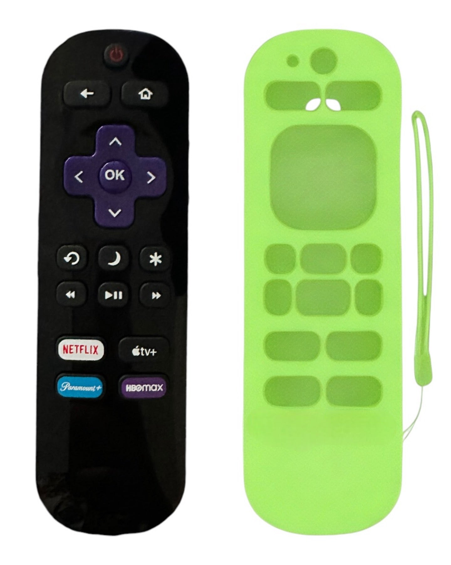 “El color de la funda de silicona se envía al azar, de acuerdo a disponibilidad y podría ser en color: verde, azul, azul ligero, negro o rojo”. Estimado comprador: este control remoto únicamente es compatible para tu dispositivo, si el control remoto anterior que usabas era físicamente igual al de la imagen publicada, en caso contrario "no" funcionará en lo absoluto. Te pedimos revisar a detalle la información y descripción del producto antes de realizar la compra. Evita devoluciones posteriores. Control Remoto Compatible Con Pantallas Roku Streaming Tv Mas Funda de Silicona con correa Incluida Características: Fácil de usar No requiere programación Fabricado Con Materiales De Alta Calidad Gran Alcance Usa Dos Baterías Aaa Ahorro de energia Incluye: 1 Control remoto 1 Funda de silicona con correa