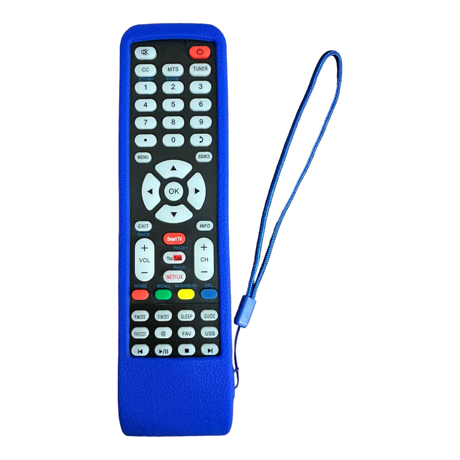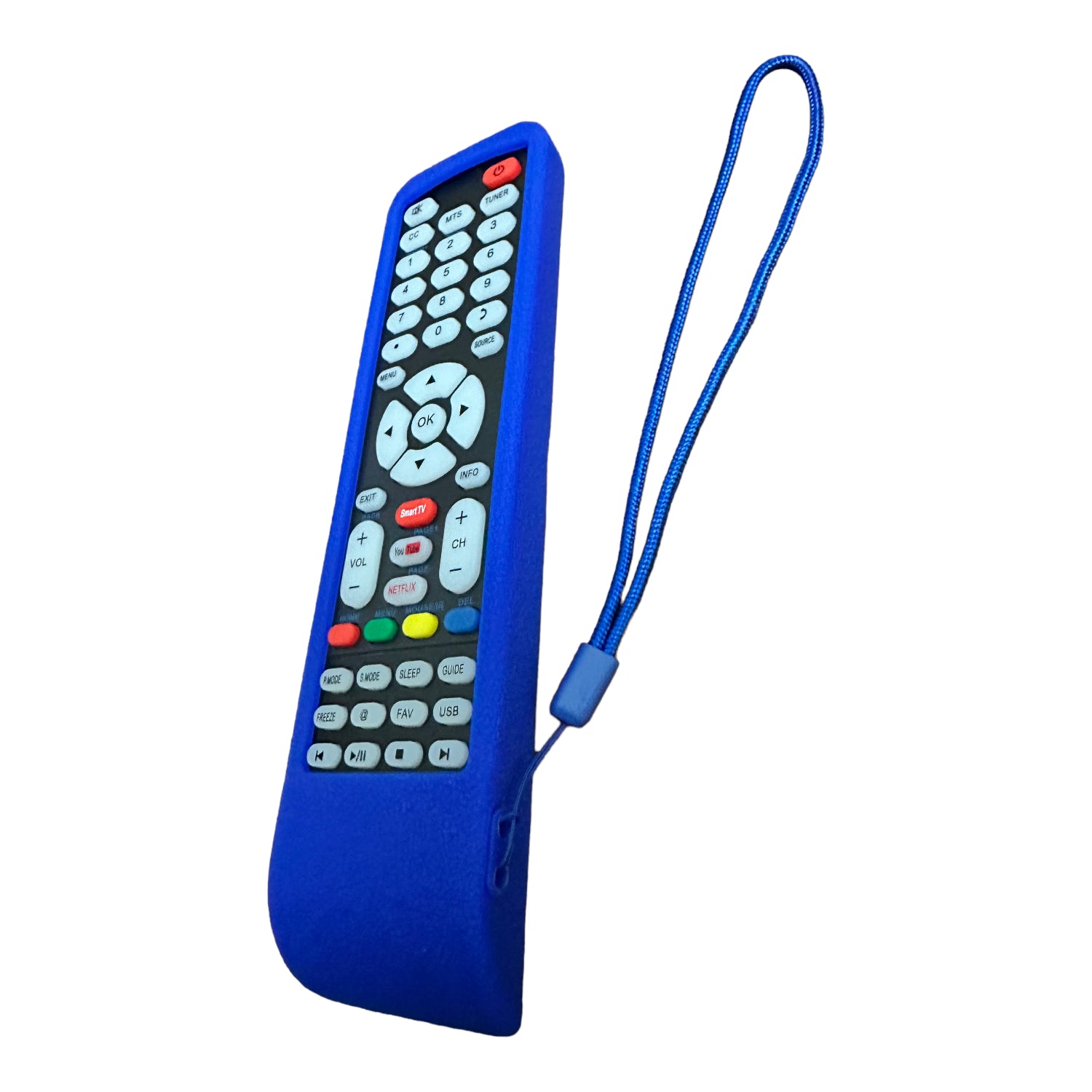 Funda Protectora De Silicona Universal Compatible Para Controles remotos de Pantallas Smart TV. Si tu control remoto, es como el que aparece en la imagen de ejemplo con la funda, seguramente es compatible con la misma. *NO INCLUYE CONTROL REMOTO* ÚNICAMENTE FUNDA DE SILICONA CON CORREA PARA SUJETAR. Características: Material Duradero, Antideslizante, A Prueba De Golpes, Anti caídas, Resistente Al Agua. Dimensiones aproximadas: 20.5cm x 4.8cm (puede existir una muy ligera variación). Descripción: 1. Fabricado Con Silicona De Alta Calidad Para Proteger Tu Control Remoto Del Polvo, golpes y Los Rayones No Deseados. 2. Fácil De Usar Y Ligero, además Proporciona La Máxima Protección, Antideslizante, Anti polvo, A Prueba De Golpes Y Lavable. 3. Ajuste Perfecto: El modelo compacto Y Ajustado De La Carcasa Protege Tu Control Remoto A La Perfección. 4. Fácil De Instalar: Simplemente, Desliza Tu Control Remoto. INCLUYE: 1 FUNDA DE SILICONA UNIVERSAL PARA CONTROL REMOTO DE PANTALLAS SMART TV.